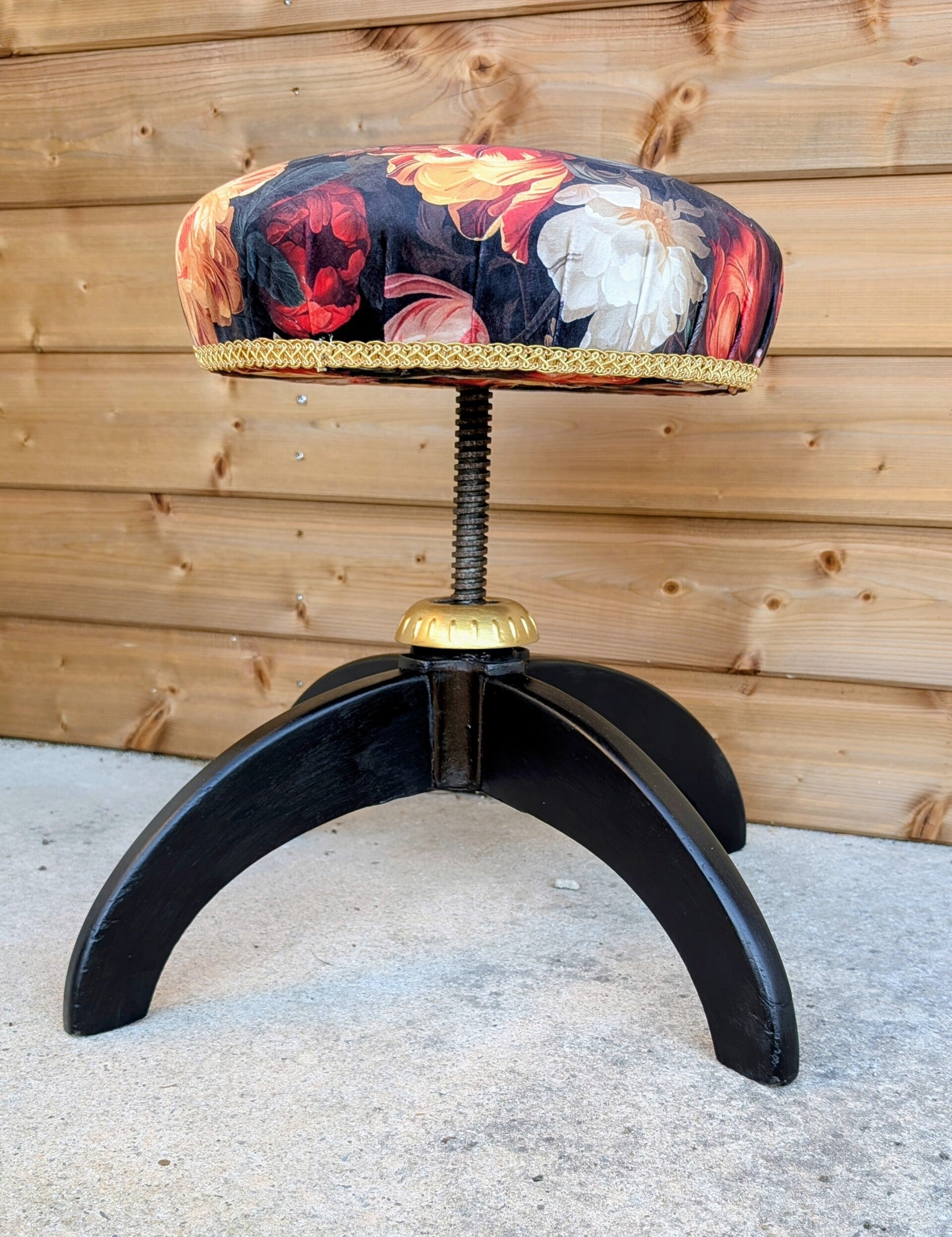 Tabouret de Piano – Noir Sculptural & Floral Couture